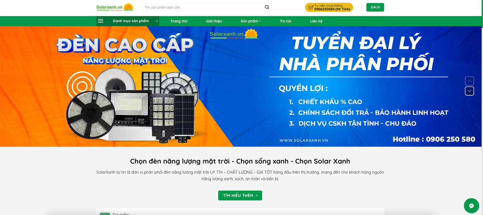 Thiết kế website bán đèn năng lượng mặt trời, SolarXanh…